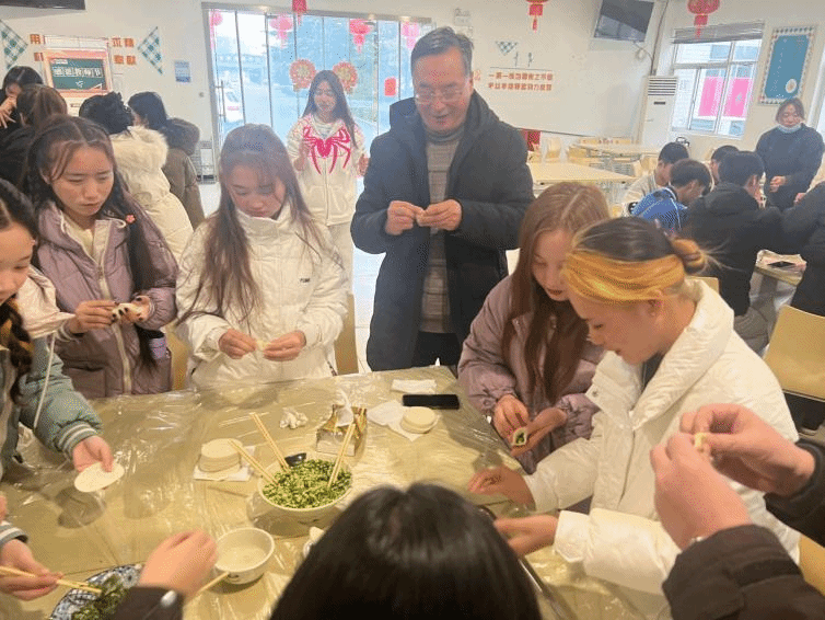为让留学生们在学校过好第一个春节,在春节前夕,校领导、国际交流中心、经济管理学院的老师及外包企业管理人员与老挝留学生们欢聚一堂,共同举办了龙年留学生新春联谊会等活动,让留学生们在欢喜热闹的氛围中感受中华年俗文化。活动现场,在老师们的耐心指导下,留学生们提笔蘸墨,不多时,一个个生动的新春“福”字便跃然纸上,留学生们对于第一次写毛笔字纷纷表示:“非常地新奇有趣,书法让我们对中国传统文化有了更深的了解。”联谊会上,在校老师与留学生们一起载歌载舞,表演了《美丽老挝》、《彩云之南》、《芦花》等特色文艺节目,共迎新春佳节。喜气洋洋的福字、形态各异的饺子,不仅让冬季的校园充满了年味儿,也将浓浓的中华情传递到了世界。