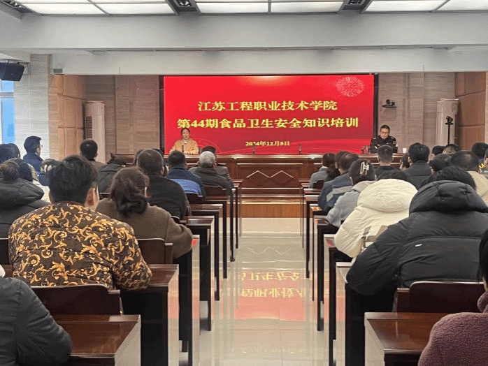 为进一步消除校园食品安全风险隐患,确保广大师生“舌尖上的安全”,12月5日,我校后勤与基建处组织举办了第四十四期食品卫生安全知识培训,后勤与基建处膳食科管理员、两校区食堂经营企业从业人员100余人参加培训,培训由后勤与基建处副处长卢蓉涛主持。