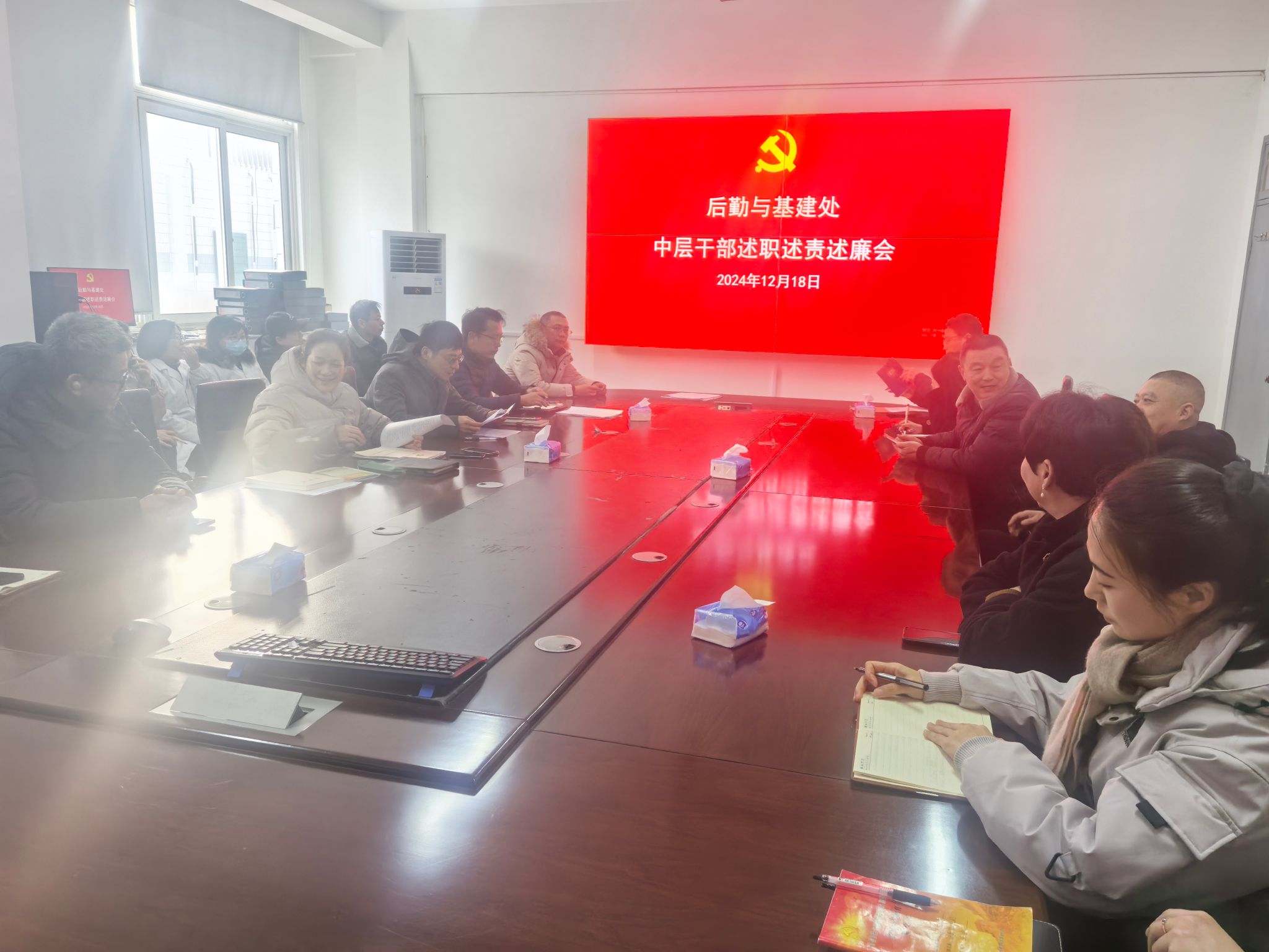 12月18日下午,后勤与基建处召开部门中层干部述职述责述廉会,会议由后勤与基建处处长鲍海忠主持。