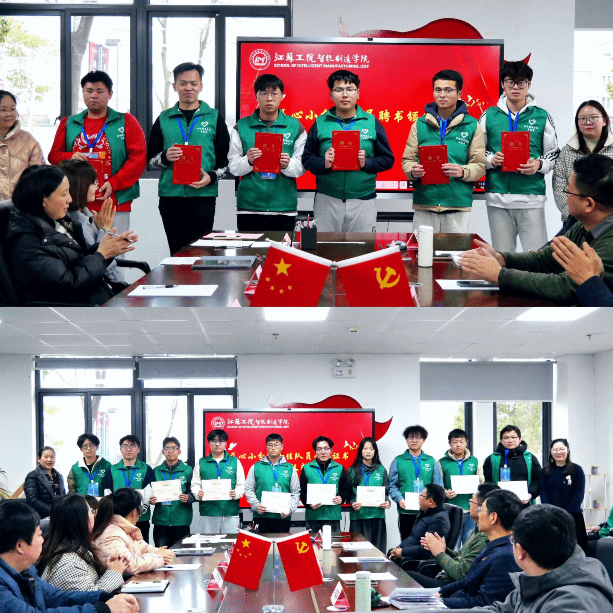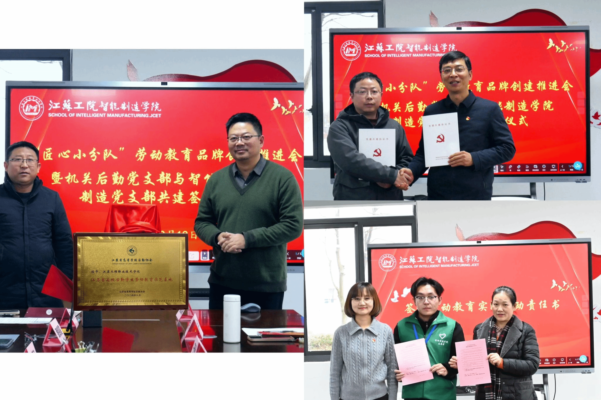 12月19日下午,“匠心小分队”劳动教育品牌创建推进会暨学校机关总支后勤处党支部与智能制造学院制造党支部共建签约仪式在海门校区“一站式”学生社区会议室举行。海门校区管理办公室主任于镇洲与智能制造学院副院长胡志刚为“劳动教育示范基地”揭牌,后勤处党支部书记鲍海忠与智能制造学院制造党支部书记周鑫鑫签订党支部共建协议,智能制造学院与后勤处相关负责人也签订了劳动教育实践责任书,明确各方义务。