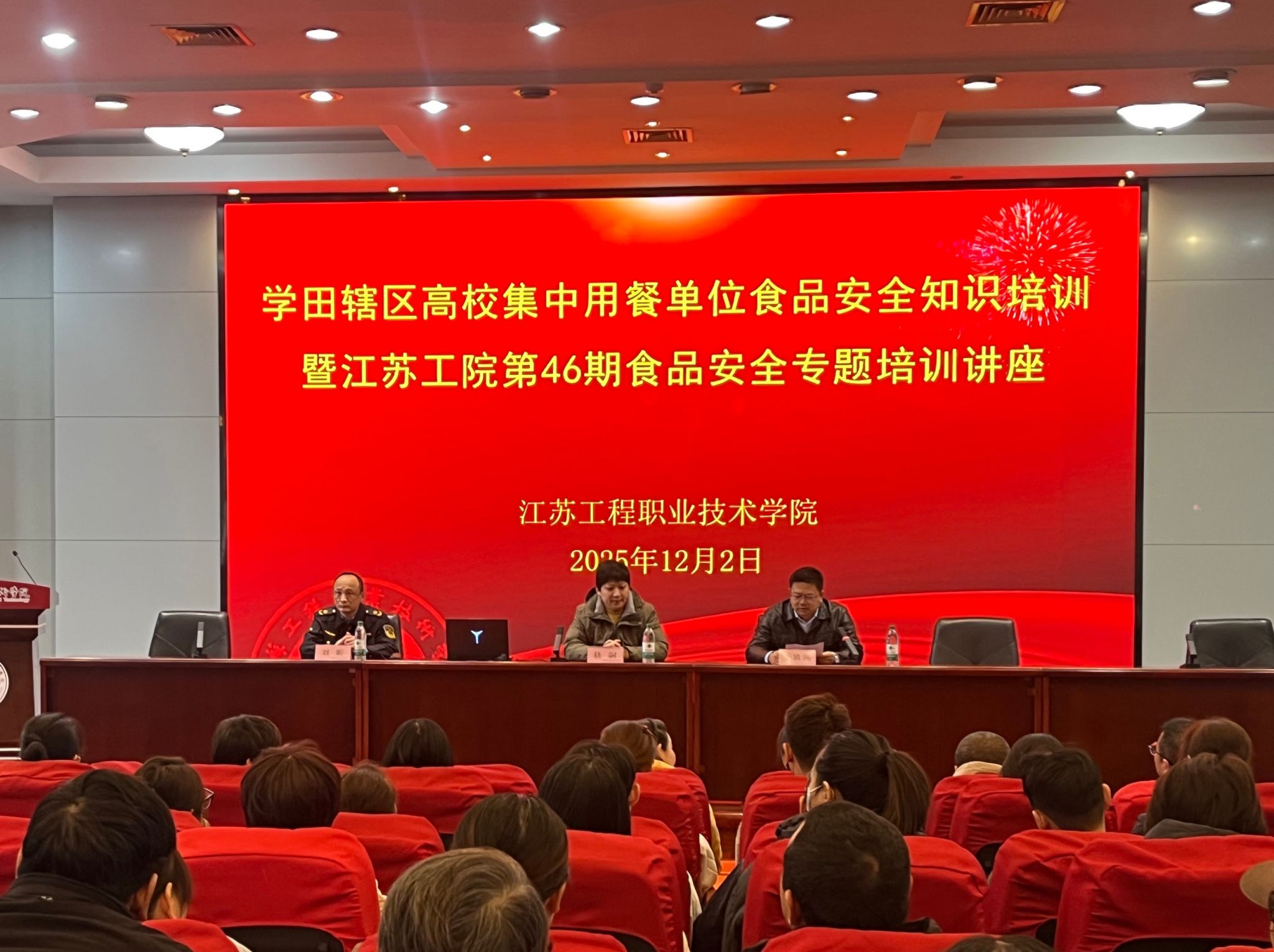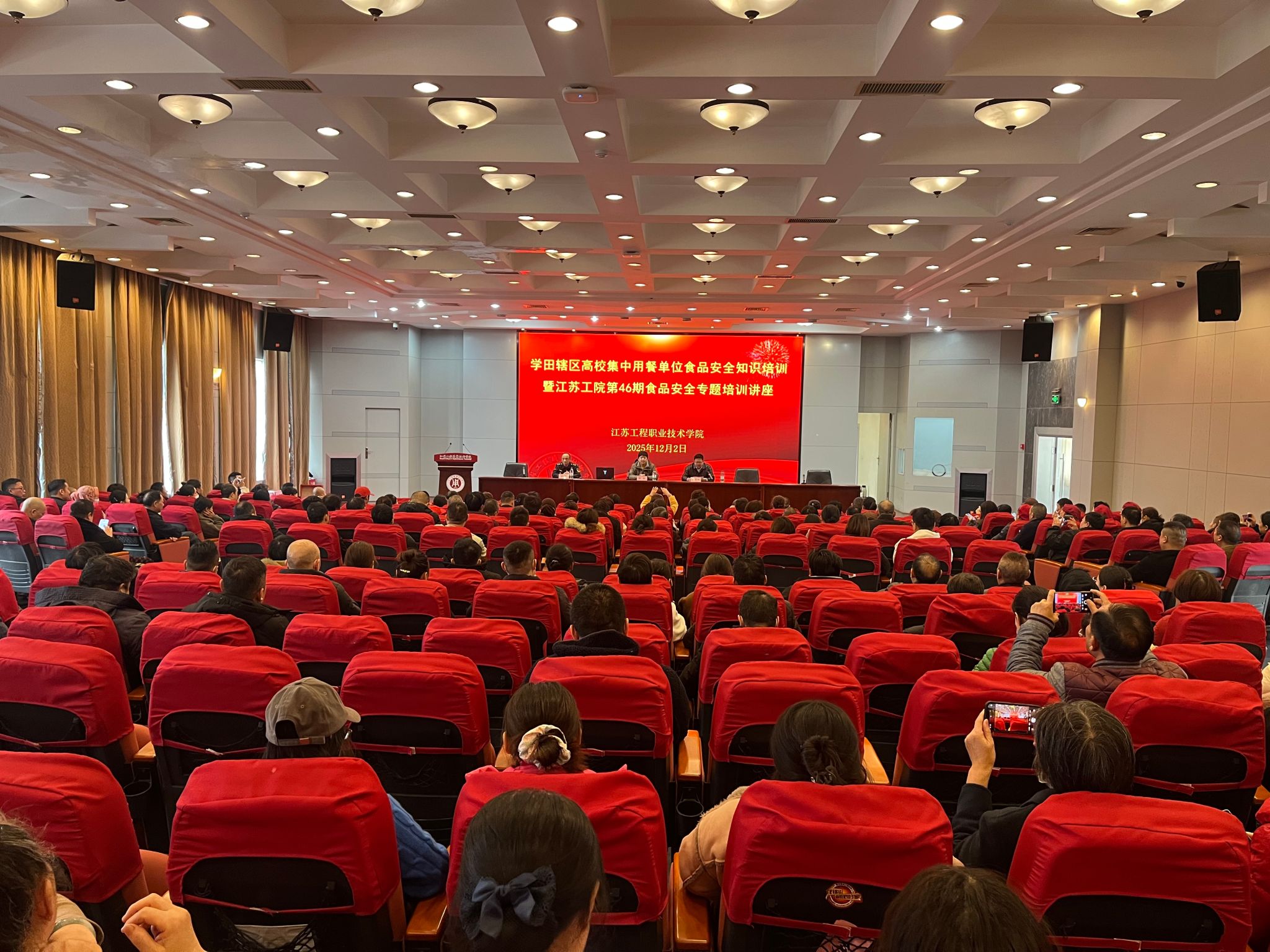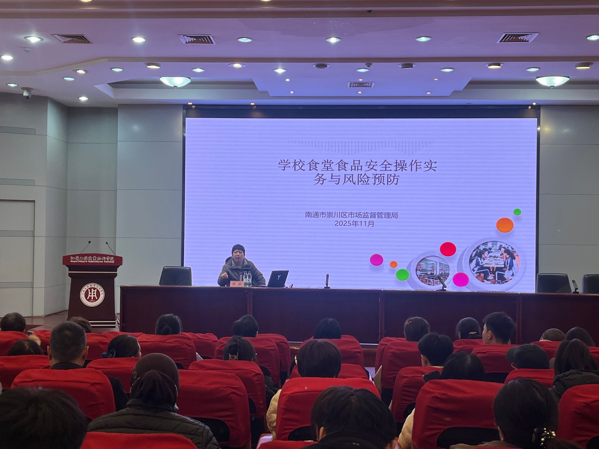 为持续强化校园食品安全管理,提升食堂从业人员专业能力,12月2日,崇川区市场监督管理局学田分局组织南通职业大学、南通科技职业学院在我校举办学田辖区高校集中用餐单位食品安全知识培训暨江苏工院第46期食品安全专题培训讲座。本次培训由我校后勤与基建处处长于镇洲主持,崇川区市场监督管理局食品管理科科长嵇嗣担任主讲嘉宾。学田分局副局长刘昕、南通职业大学后勤处副处长徐璇、南通科技职业学院后勤处副处长吴海军及三所高校食堂管理员、从业人员共200余人参会。