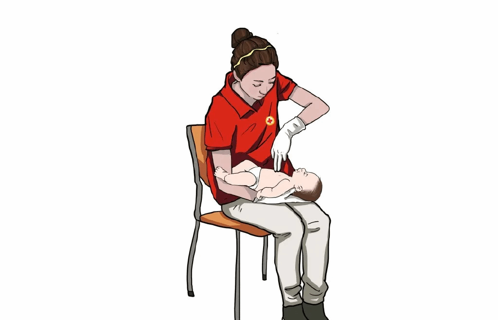 婴儿一旦意识不清,立即小心地将婴儿移到一个坚硬的平面上;如果还没有拨打急救电话,立即呼叫;开放气道,给予2~5次人工呼吸,然后进行心肺复苏。
