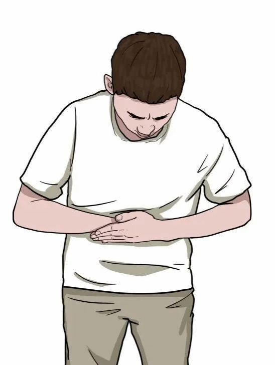 ①患者一只手握拳,用拳头的拇指侧紧抵剑突和肚脐之间(脐上两横指处)。